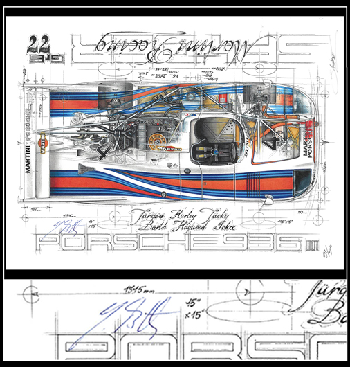 NEW Poster Porsche 936 Winner Le Mans 1977 by Sébastien Sauvadet - 30 x 40 cm Handsigned by Jürgen Barth