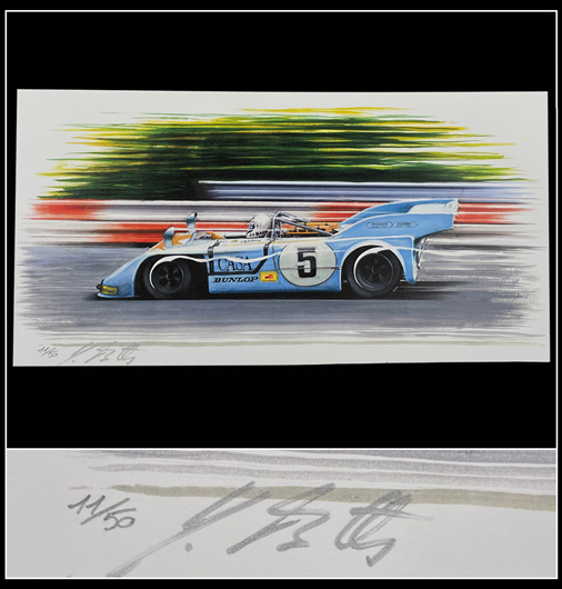 NEW Poster Porsche 908/3 Silverstone 1980 by Sébastien Sauvadet - 45 x 23 cm Handsigned by Jürgen Barth