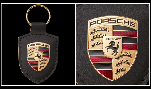 Porte-clés Ecusson Porsche Pièce de Cuir de 7 cm avec contour piqué - Couleur Noir - Anneau doré Ecusson céramique et métal de 3 cm - Dimensions 8 x 4,1 x 0,8 cm Porsche WAP0500900E 34,95 € TTC / Incl. Taxes