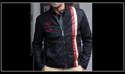Veste homme Gulf Steve McQueen Le Mans Couleur beige / bandes rouge et bleu Matériel 100% Coton / Bandes en cuir Doublure intérieure 100% Nylon 3 poches zippées 2 poches intérieures 139 € TTC / Incl. Taxes |