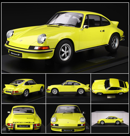 Porsche 911 Carrera RS 2.7 Touring 1973 Jaune clair 6262 1/8 - Minichamps 800653000 Modèle en résine - Vitrine incluse - Plaque gravée sur socle Edition limitée - 99 exemplaires numérotés 1495 € TTC / Incl. Taxes