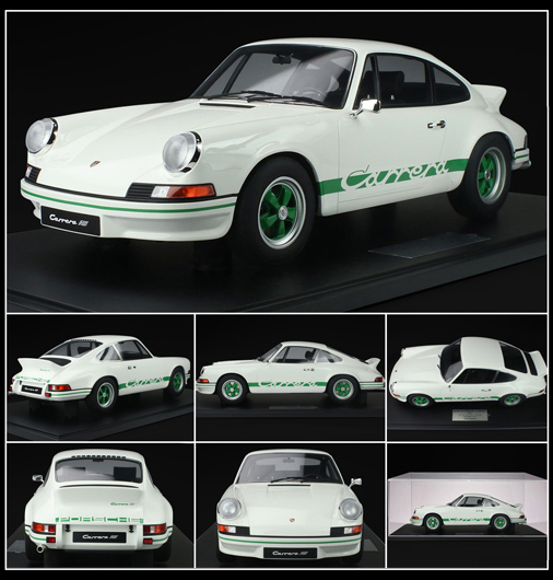 Porsche 911 Carrera RS 2.7 Touring 1972 Vert viper 3838 1/8 - Minichamps 800653002 Modèle en résine - Vitrine incluse - Plaque gravée sur socle Edition limitée - 99 exemplaires numérotés 1495 € TTC / Incl. Taxes
