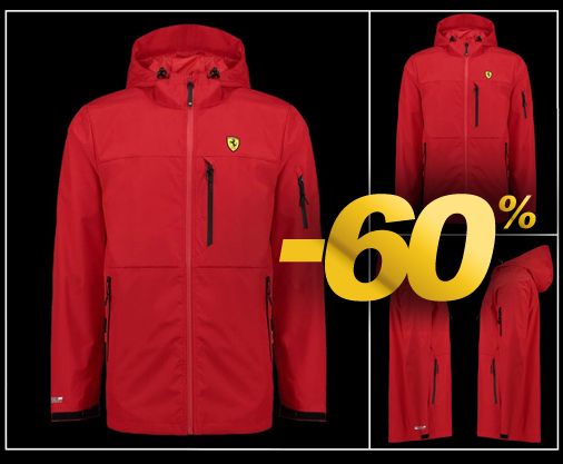 Veste de pluie homme ferrari Veste à capuche imperméable - Matière 100% Nylon Deux poches extérieures zippées - Poche zippée poitrine et manche Couleur Rouge - Cordons de serrage à la taille Ferrari 130181004600
