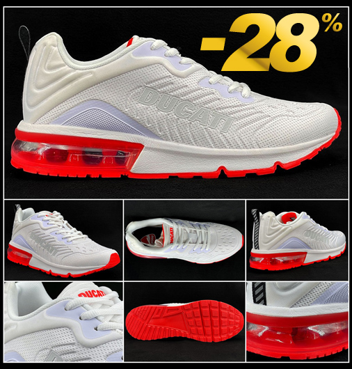 Chaussures homme Ducati Moto GP Col et languette rembourrés - Doublure tissu d’excellente qualité Semelle extérieure anti dérapante - Matière Mesh - Couleur Blanc