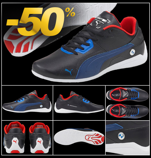 Chaussures homme BMW Drift Cat Delta by Puma Dessus Cuir synthétique - Doublure Textile - Semelle Caoutchouc Coupe basse - Lacets ronds - Couleur Noir / Bleu / Rouge Puma 307100-01