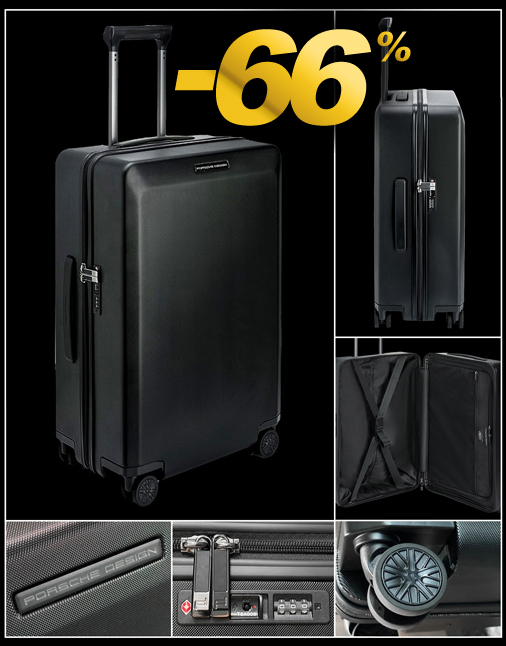 Trolley Porsche Design - Voyager Collection - Taille M Valise rigide ultralégère à 4 roulettes - Dimensions : 69 x 48 x 28 cm - Serrure à combinaison Matière : Polycarbonate - Contenance : 83 L - Poignée ergonomique Fermeture zippée ultra-sécurisée - Doublure intérieure : Polyester 5 ans de garantie - Porsche Design ORT05561