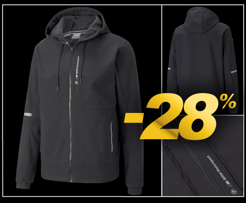Veste homme BMW Motorsport by Puma Veste Softshell confortable - Couleur noir - 2 poches latérales à zip Matière 88% Polyester / 12% Elasthanne - Capuche avec cordon de serrage Puma 531137-01