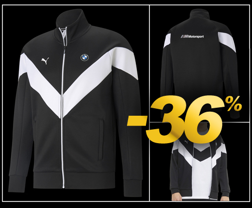 Veste Homme BMW Motorsport by Puma Couleur Noir / Blanc - Fermeture par Zip - Poches latérales zippées Matière 66% Polyester / 34% Coton - Col droit / Poignets et taille côtelés Puma 599503-01