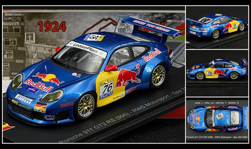 NEW Porsche 911 GT3 RS Red Bull n°76 24h Spa 2002 - 1 : 43