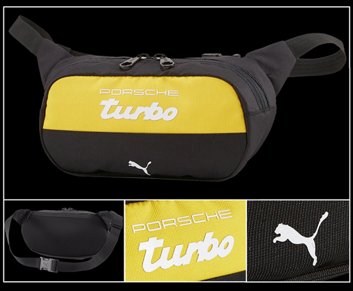 Sac Banane Porsche Turbo by Puma Matière 74% Polyester / 26% Polyamide - Face arrière rembourrée et micro-aérée Poches zippées - Couleur Noir / Jaune - Dimensions 23 x 12 x 5 cm Puma 078791-01
