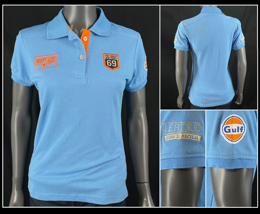 Polo femme Gulf 1st Victory - Le Florio - Giro di Sicilia Couleur bleu cobalt - Matériel 65% coton / 35% polyester Ecussons vintage brodés 59,95 € TTC / Incl. Taxes