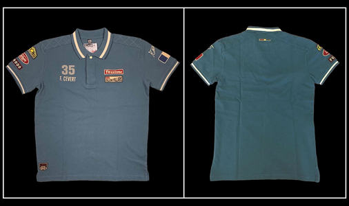 Polo homme François Cevert n°35 - Ollons Villars 1971 Effet matelassé sur les épaules - Couleur: Bleu - 100% Coton 99,95 € TTC / Incl. Taxes