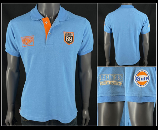 Polo homme Gulf 1st Victory - Le Florio - Giro di Sicilia Couleur bleu cobalt - Matériel 65% coton / 35% polyester Ecussons vintage brodés 59,95 € TTC / Incl. Taxes