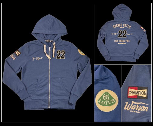 Veste homme Jo Siffert 1968 2 poches latérales - Capuche avec cordon de serrage - Manches et tailles élastiques Fermeture par zip - Couleur : Bleu - Matière : 100% coton 99,95 € TTC / Incl. Taxes