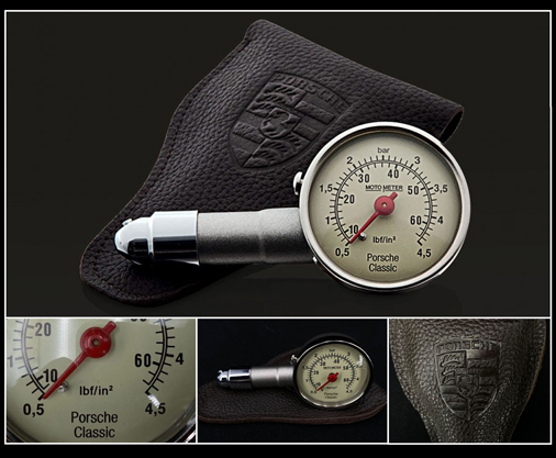 Manomètre Porsche pour contrôle de la pression des pneus Livré avec pochette en cuir refermable - Pression jusqu'à 4.5 bar Convient pour tous modèles Porsche - Porsche Classic 91172220200 69,95 € TTC / Incl. Taxes