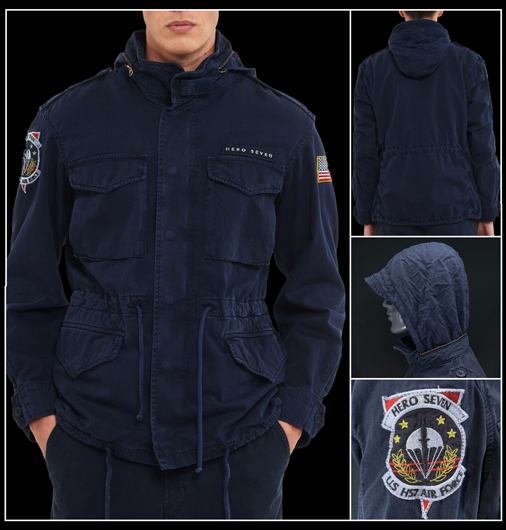 Veste homme Hero Seven - US Air Force Coupe droite ajustable grâce à ses cordons de serrage 2 poches poitrine et 2 poches pression - Matière : 100% coton Matière : 100% coton - Badges brodés - Couleur : Bleu Marine Hero Seven E22219 199,95 € TTC / Incl. Taxes