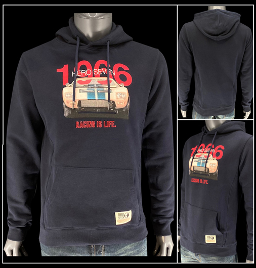 Hoodie homme Hero Seven - Ford GT40 1966 Capuche avec cordon de serrage - Couleur : Bleu Marine Matière : 100% Coton - Poche à double entrée Hero Seven E22419 69,95 € TTC / Incl. Taxes