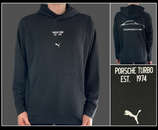 Hoodie mixte Porsche Turbo Matière 68% Coton / 32% Polyester - Couleur Noir Poche kangourou - Capuche fixe Porsche 634488-01