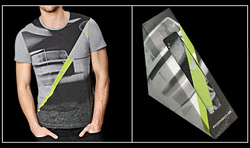 T-shirt homme Porsche - Tailles XS / S Seulement Matière 100% Coton doux au toucher - Couleur gris / noir / vert acide Livré dans une boîte sandwich Porsche WAP421