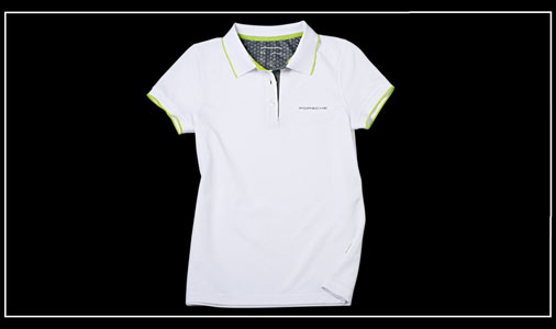 Polo Femme Porsche - Tailles XS / XL Seulement Signature Porsche grise brodée sur la poitrine Couleur : blanc - Matière : 100% coton piqué Porsche WAP541