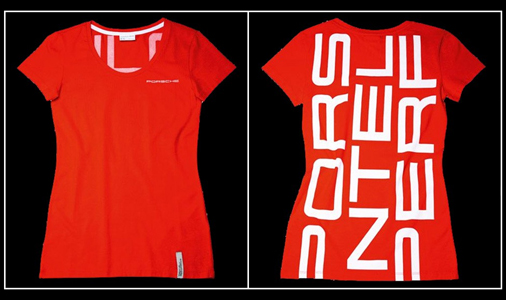 T-shirt femme Porsche Racing Collection - Tailles XL / XXL seulement Couleur: rouge / blanc - Matière: 95% coton, 5% elastane Porsche WAP797