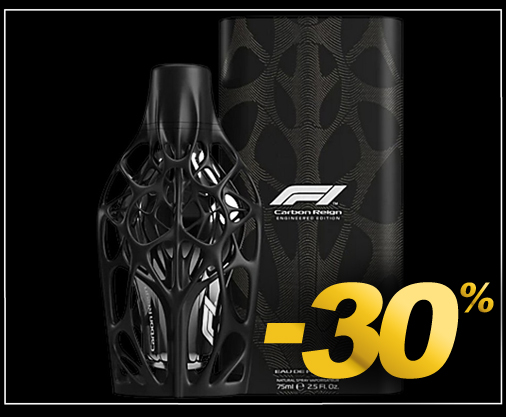 Eau de Parfum pour homme - Formula 1 "Carbon Reign" Design 3D exosquelette en résine noire renfermant le parfum F1 - Contenance 75 ml Senteur alliant notes d'agrumes, poivre timut, géranium, feuille de violette et bois de santal