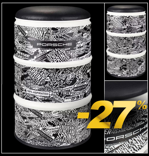Siège Porsche 911 GT3 R Camouflage Réplique d'un baril de pétrole - Utilisation en intérieur ou en extérieur Assise rembourrée - Revêtement simili cuir - Tonneau en métal Hauteur 60 cm - Diamètre 40 cm - Poids 10 kg Made in Germany - Porche WAP0501030S0MS