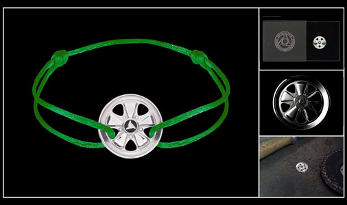 Bracelet Fuchs Matière Argent Sterling - Couleur Cordon vert kelly - Fabriqué à la main en Angleterre Edition Limitée - 911 exemplaires numérotés