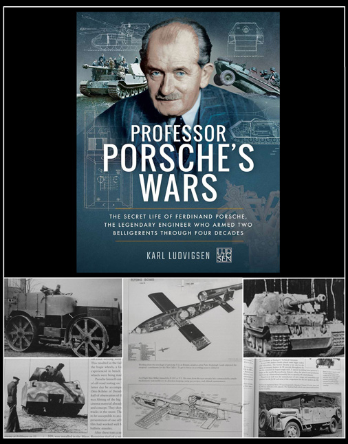 Livre "Professor Porsche's wars - The secret life of Ferdinand Porsche" Un aperçu détaillé et très documenté des activités militaires de Ferdinand Porsche Texte en anglais - 286 pages - 200 N&B - Auteur : Karl Ludvigsen Dimensions : 22 x 28 cm - Année 2018 29,95 € TTC / Incl. Taxes