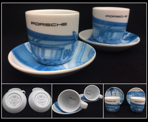 Set de 2 Tasses expresso Porsche Taycan Avec soucoupes assorties - Couleur blanc / bleu électrique / noir Compatible lave-vaisselle - Made in Germany Porsche Design WAP0506010LTYC Edition limitée - 5000 exemplaires numérotés 39,95 € TTC / Incl. Taxes