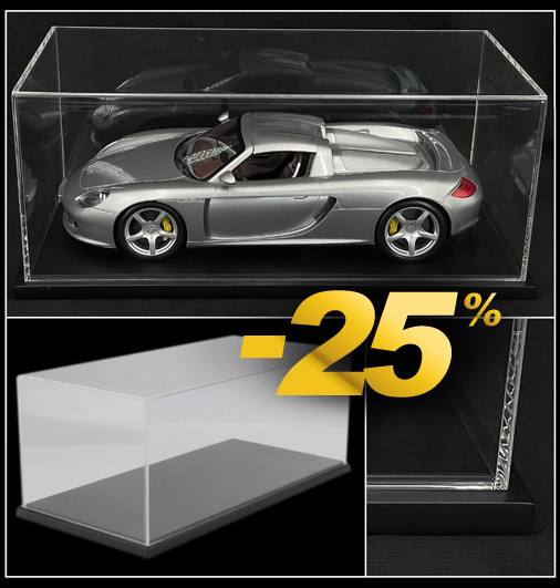 Vitrine pour miniature 1/18 Partie supérieure de la vitrine est d'une qualité Acrylique élevée Partie inférieure en bois noir très solide et d'excellente qualité Dimensions : 33.8 x 17 x 13.3 cm 39,95 € TTC / Incl. Taxes