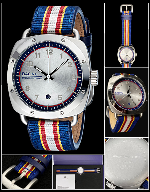 Montre Porsche Rothmans Style Mouvement à quartz - Boîtier en acier inoxydable Bracelet en textile avec intérieur en cuir de vache - Indicateur de date Etanche à 10 ATM - Diamètre 42 mm - Fabriqué en Allemange Porsche WAP0701700N0CL