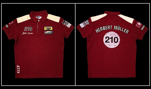 Polo homme Hans Herrmann 917 n°23 - 24h Le Mans 1970 Effet matelassé sur les épaules - Couleur : rouge - 100% coton Signature Hans Herrmann et 917 sur la poitrine