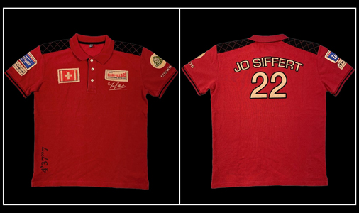 Polo homme Jo Siffert n°22 - Ollons Villars 1962 Effet matelassé sur les épaules - Couleur: Rouge / Noir - 100% Coton Signature Jo Siffert sur la poitrine 99,95 € TTC / Incl. Taxes
