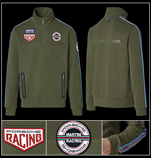 Veste Homme Porsche Martini Racing Effet coupe-vent - Col montant droit / Fermeture par zip 2 poches sur le devant - Matière 74% Coton / 26% Polyester Couleur Vert Olive / bandes rouge et bleu Martini Porsche WAP552M0MR 139,95 € TTC / Incl. Taxes