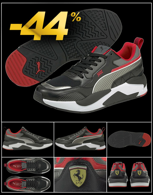 Chaussure homme Ferrari Puma Race X-Ray 2 Motifs en reliefs sur les cotés - Bande Puma grise en relief Couleur Noir / Gris / Rouge - Matière synthétique