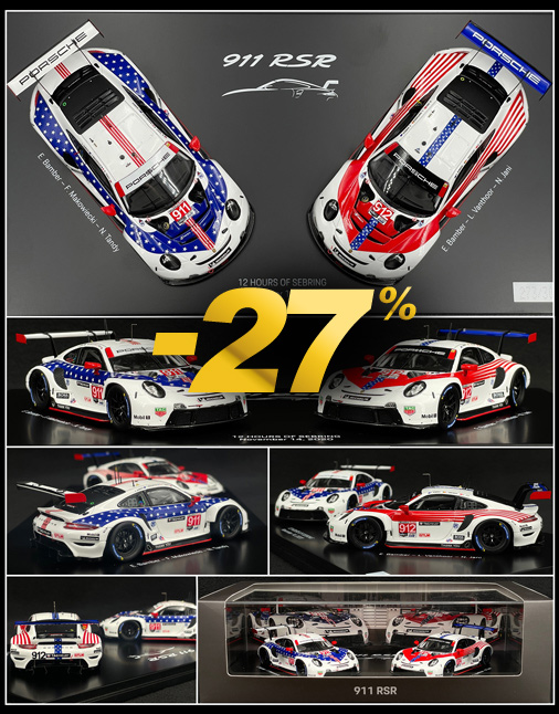 Set of 2 Porsche 911 GT3 RSR n°911 & 912 12h Sebring 2020 - 1 : 43