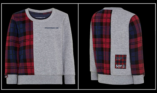 Sweatshirt enfant Porsche 911 Turbo n°1 Hommage à l'intérieur de la 1ère 911 par son motif écossais Couleur Gris - Matière 60% Coton / 40% Polyester Porsche WAP358RTN1 79,95 € TTC / Incl. Taxes