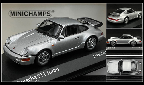 Porsche 911 Turbo 1990 Gris Argent 1/43 - Minichamps 943069104 Edition Limitée - 500 exemplaires