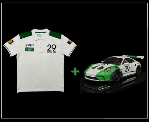 Polo homme Jo Siffert Zeltweg 1969 Matière 100% Coton - Couleur Blanc / Vert Warson 24023 Porsche 911 GT3 RS - Tribute to Jo Siffert Blanc / Vert 1/18 - Spark WAP0215100SGT3