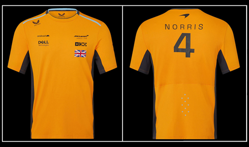 T-shirt homme Lando Norris McLaren F1 Matière 88% Polyester / 12% Elasthane - Couleur Orange Papaye Tissu Léger et respirant - Col côtelé McLaren TM2608
