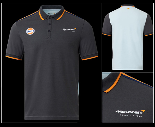 Polo homme Gulf McLaren F1 Team Couleur Noir / Bleu / Orange - Matière 100% Coton McLaren TM3410