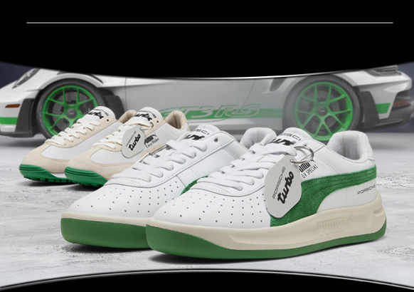Chaussures mixte Porsche 911 Turbo GV Special Matière cuir - Doublure en textile - Semelle en Caoutchouc Inclus deux paires de lacets Vert / Blanc - Couleur Blanc Alpin / Vert Plaque collector métallique Porsche incluse Puma 311458-02
