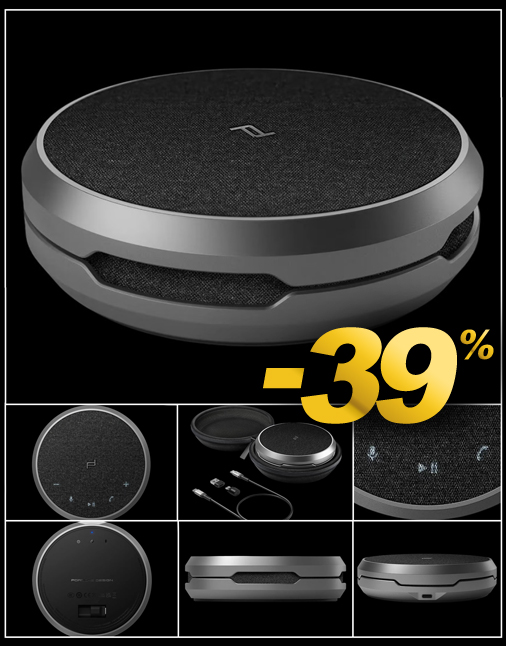 Enceinte de conférence Bluetooth Porsche Design Composée de quatre microphones pour une couverture à 360° et à une distance de 3 mètres Autonomie jusqu'à 12 heures - Dimensions 3,4 x 1,33 x 1,33 cm - Couleur Noir 1 câble USB-C vers USB-C, 1 adaptateur USB-C vers USB-A, une housse de transport Se connecte facilement à un ordinateur portable - Design épuré en aluminium Porsche Design 4056487038551