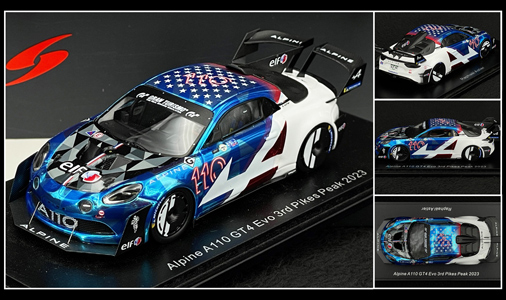 NEW Alpine A110 GT4 Evo n°110 3rd Pikes Peak 2023 - 1 : 43