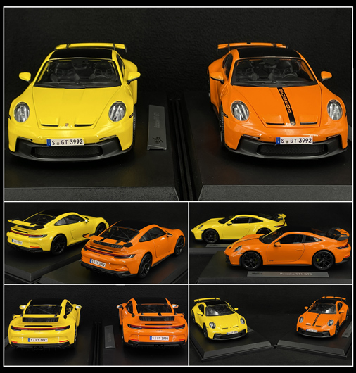Finden Sie es exklusiv in den Lackierungen Gulf Orange und Racing Gelb im Maßstab 1:18, um Ihre Sammlung zu vervollständigen !