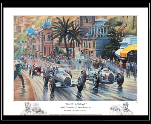 Reproduction d'une peinture originale de Benjamin Freudenthal Silver Arrows, Monaco GP 1936 80 x 60 cm - Papier cartonné 300g 44,95 € TTC / Incl. Taxes