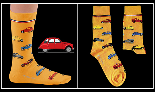 Chaussettes mixte Inspiration Citroën 2CV Matière 80% Coton peigné / 17% Polyamide / 3% Elasthanne Couleurs Orange - Tricoté en continu sans coutures 11,95 € TTC / Incl. Taxes