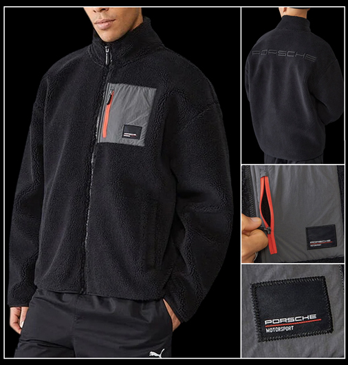 Veste polaire mixte Porsche Motorsport Veste sherpa au tissu aussi chaud que confortable et au touché très doux Matière 100% Polyester - Fermeture principale zippée - Couleur Noir 2 poches latérales - 1 poche poitrine Porsche