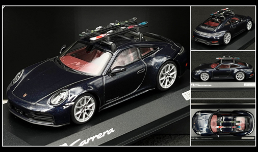 Porsche 911 Carrera Coupe 2024 with genuine Porsche skis on the roof - 1 : 43